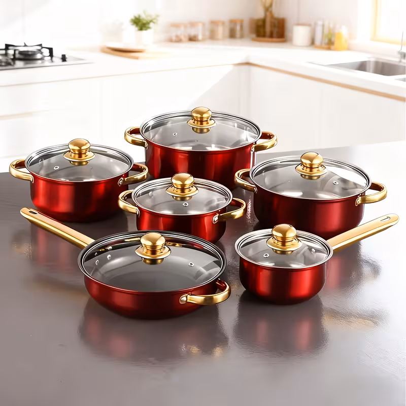 12pcs Cookware Set, Made Of Durable Stainless Steel. Do Not Use An Open Flame; It's A Low-temperature Non-stick Cookware Set (including Frying Pan And Milk Pan), Ideal As A Gift Set