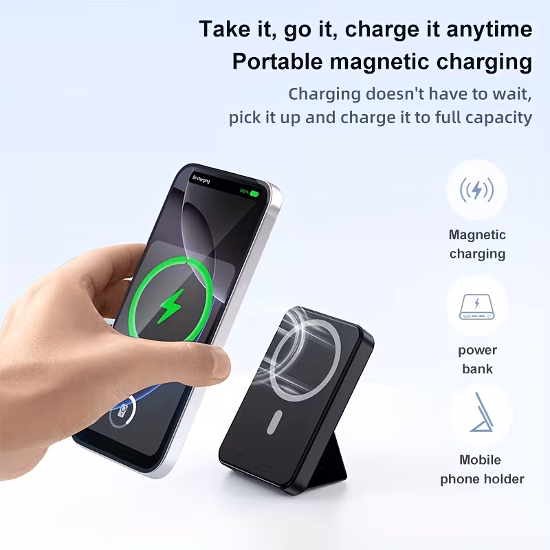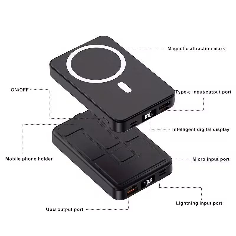 Magnetic Power Bank 10000mAh Wireless Portable Charger, Foldable Stand With Type-CCable LED Display, 22.5W PD Fast Charging Lighting Mag-Safe Battery Pack For IPhone 15/14/1312/Pro/Pro/Samsung Android, Etc. Comes With A Base For Use On The Plane
