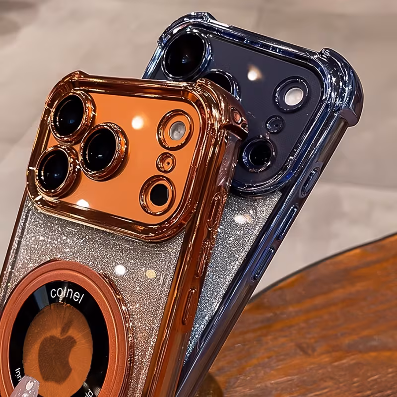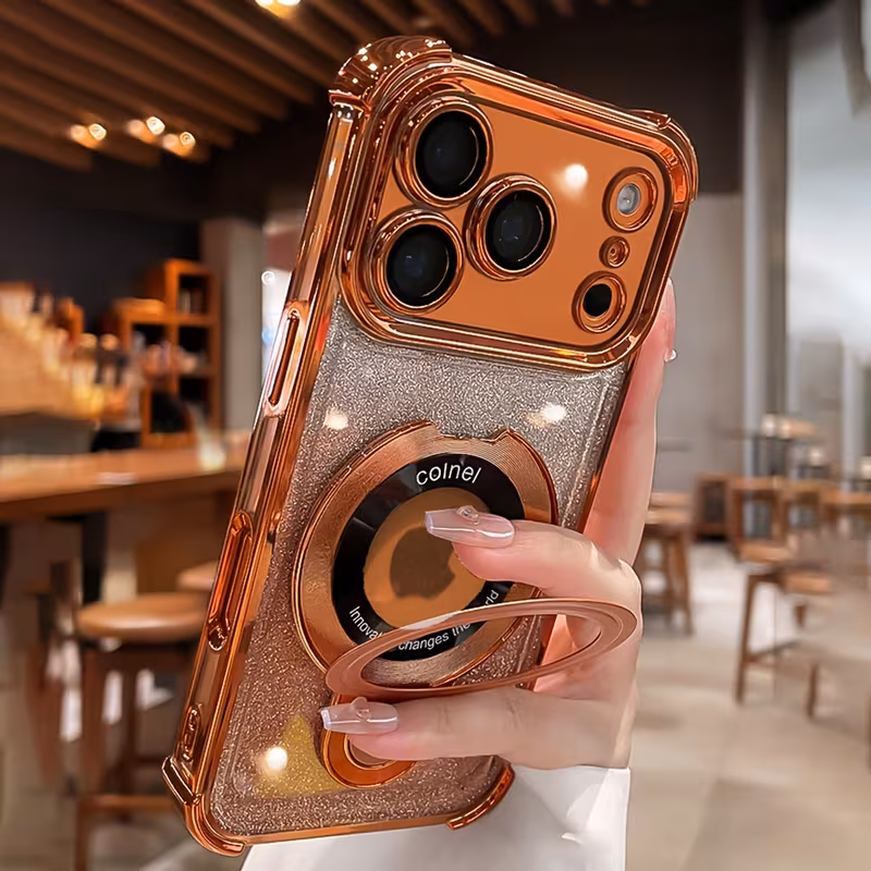 New Ultra-Shockproof Stand Phone Case with Electroplated Laser Glitter, Suitable for Iphone 17, 16, 15, 14, 13, 12, 11 Plus Pro Max Air. It Features a Stand And Supports Wireless Charging, Making It a Great Gift for Friends Or Partners.